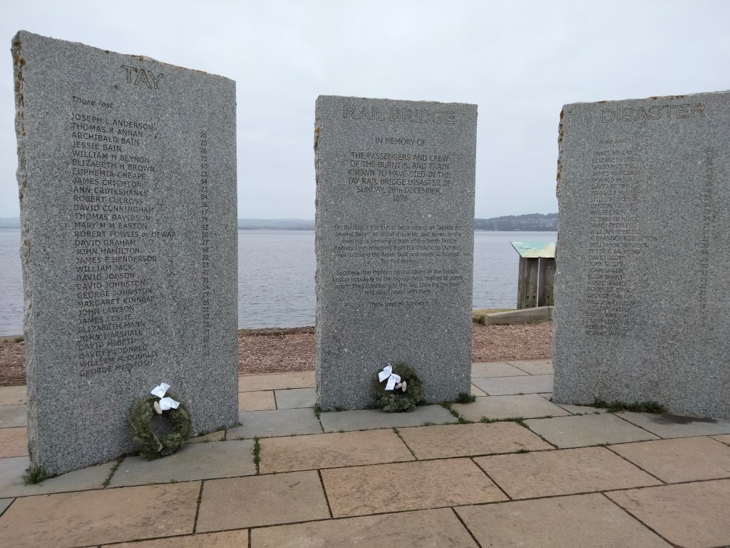 On Saturday the 28th December 2013, at simple but moving ceremonies held on both sides of the Tay, memorials were unveiled to the 59 known victims of the Tay Bridge Disaster of 1879.The great majority of those who were lost came from Fife and Tayside, and typically were returning to Dundee on the train after visiting family and friends on the south side of the river. This was the 134th anniversary of the tragedy, an event still powerfully remembered in the locality, and now marked in the form of substantial granite panels bearing the names of all those passengers and crew who went down with the train.
